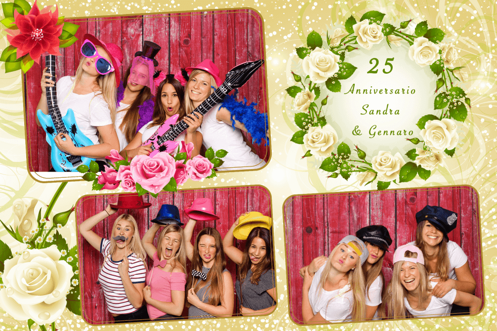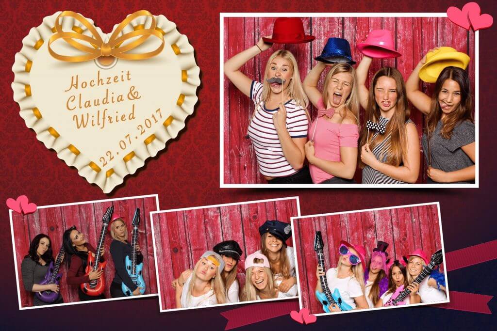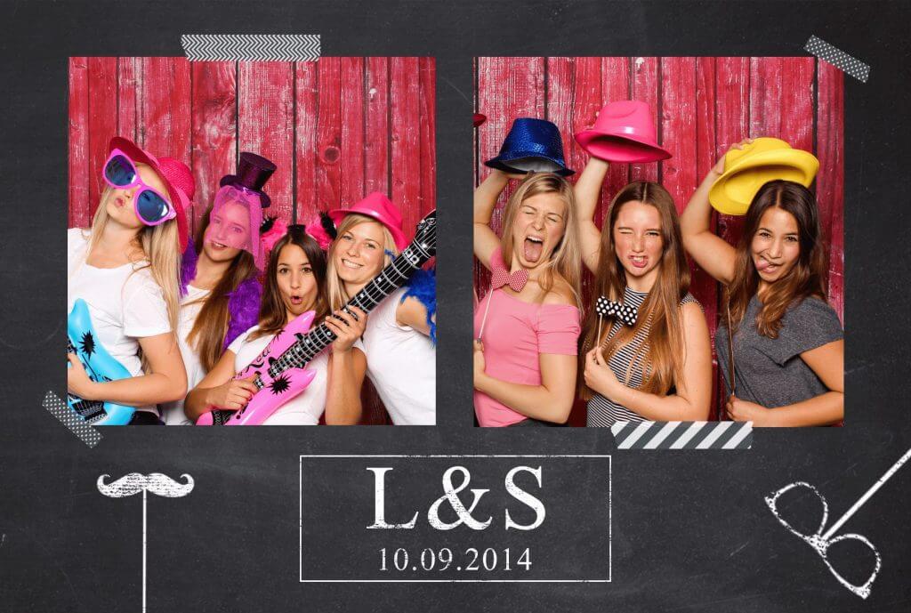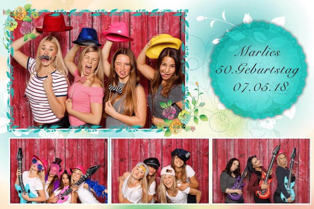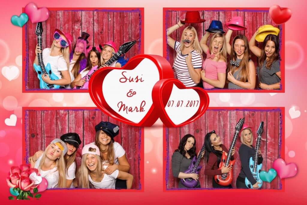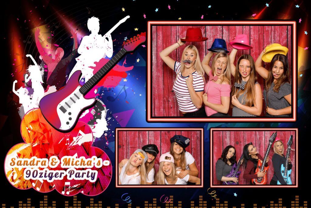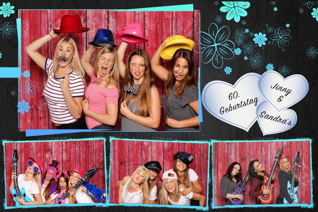 Mit der Druck-Flat werden deine Fotos direkt auf der Party genau so ausgedruckt (4 Aufnahmen auf einem Foto mit Design deiner Wahl) – nonstop hintereinander.